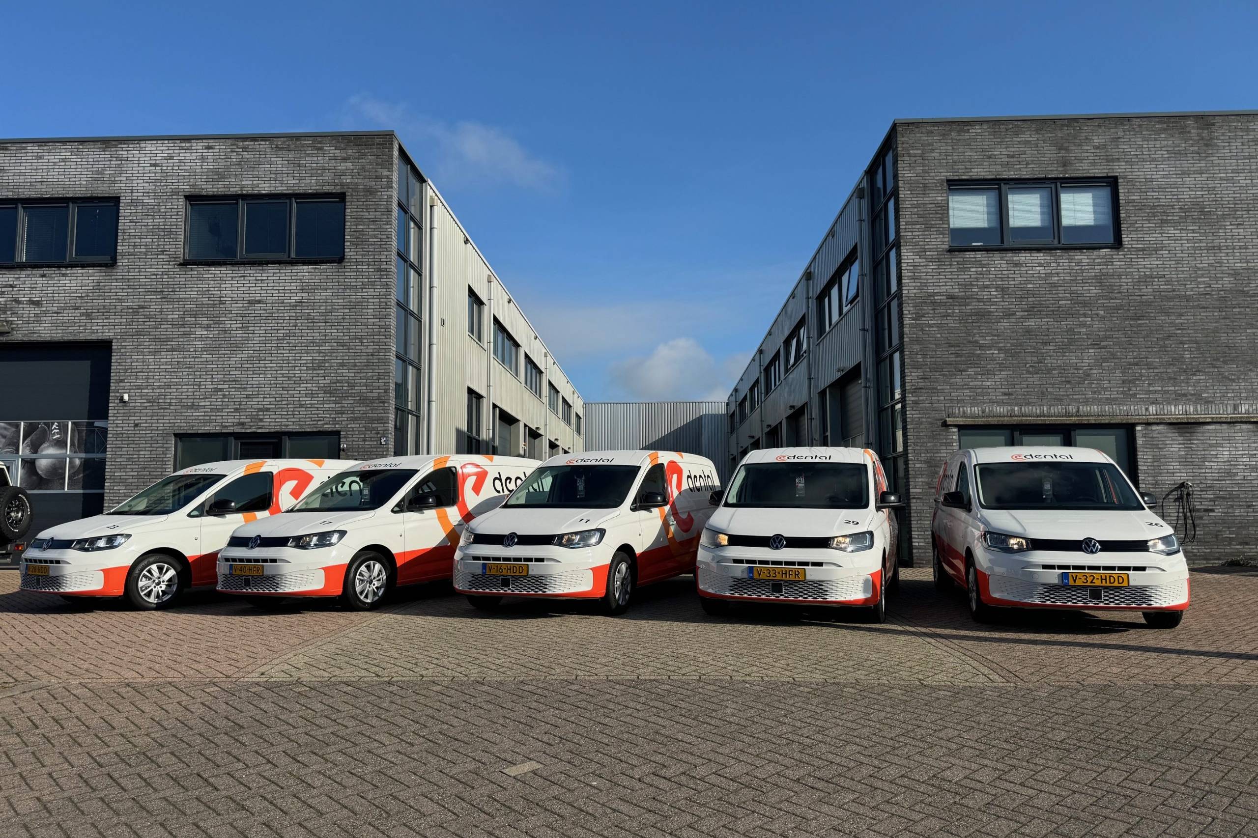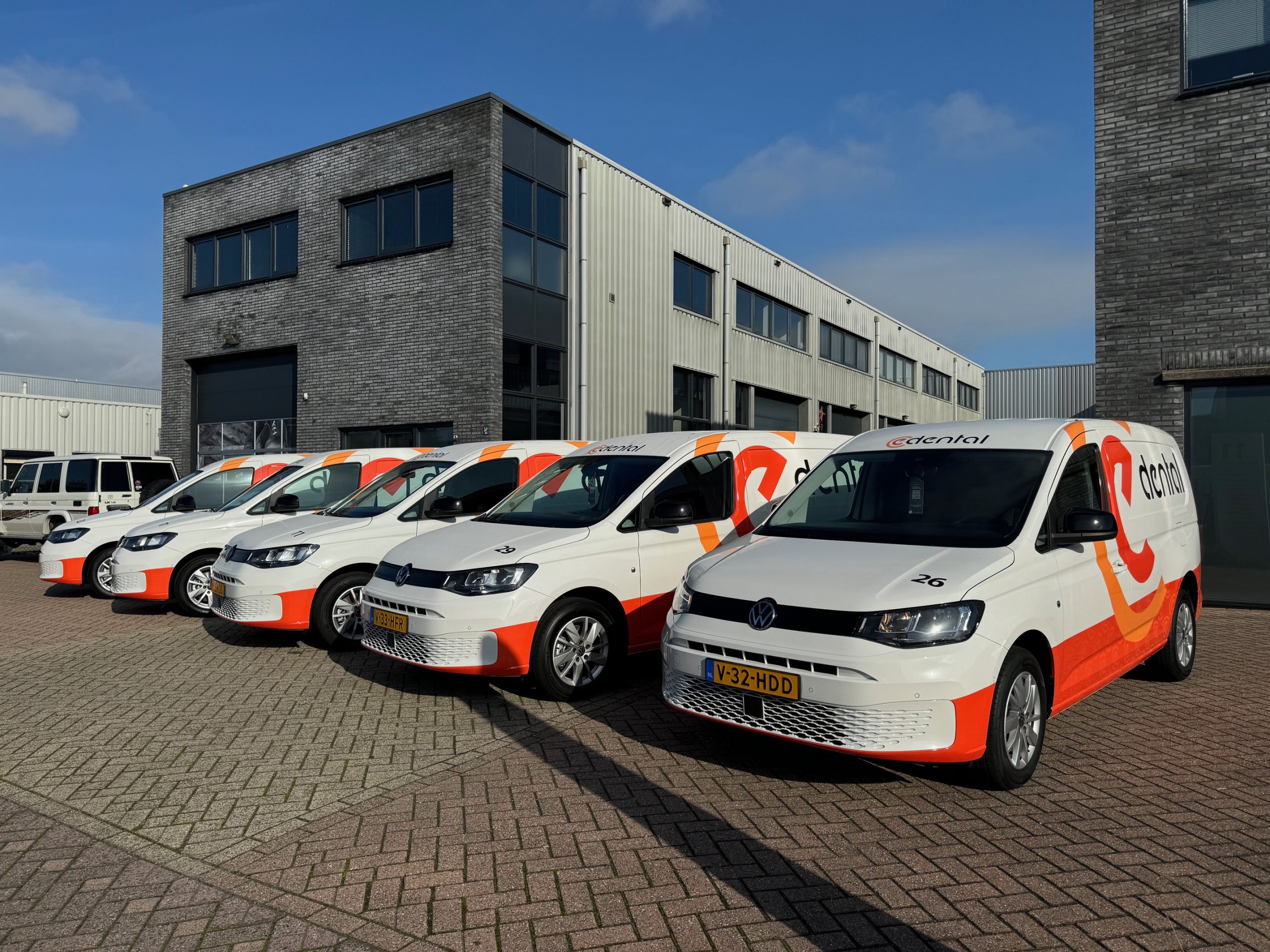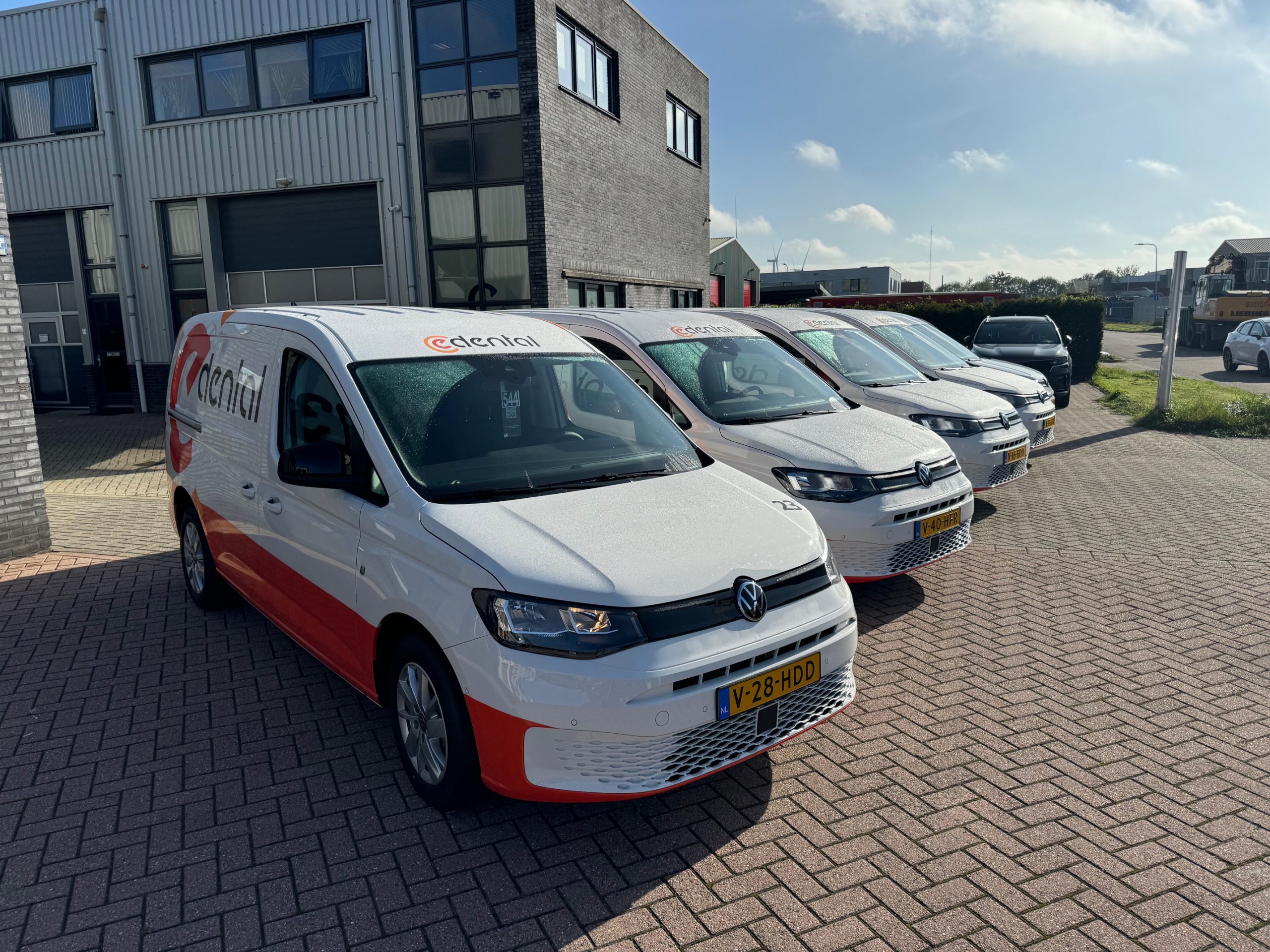 In verband met aankomende BPM heffing (vanaf januari 2025) op ook grijs kenteken voertuigen heeft E-Dental snel geschakeld door het gehele wagenpark te vernieuwen. Er is gekozen voor in totaal 6 Volkswagen Caddy's welke allemaal zijn voorzien van de nieuwe herkenbare huisstijl.