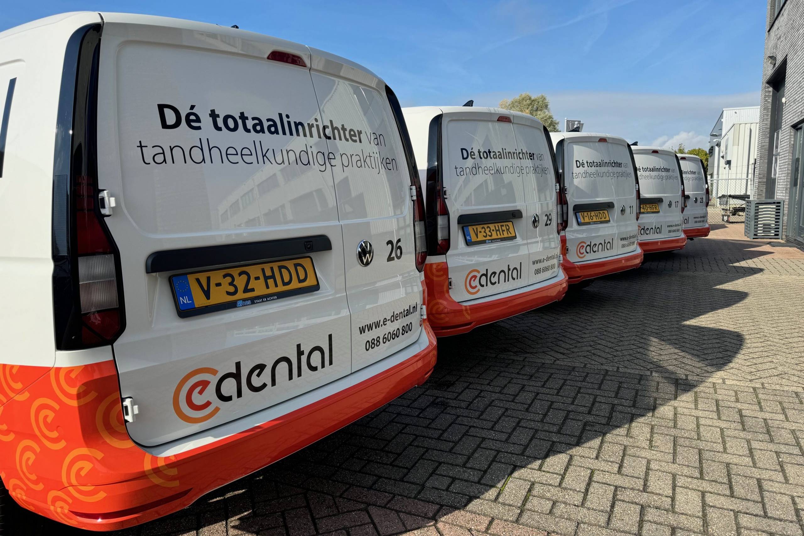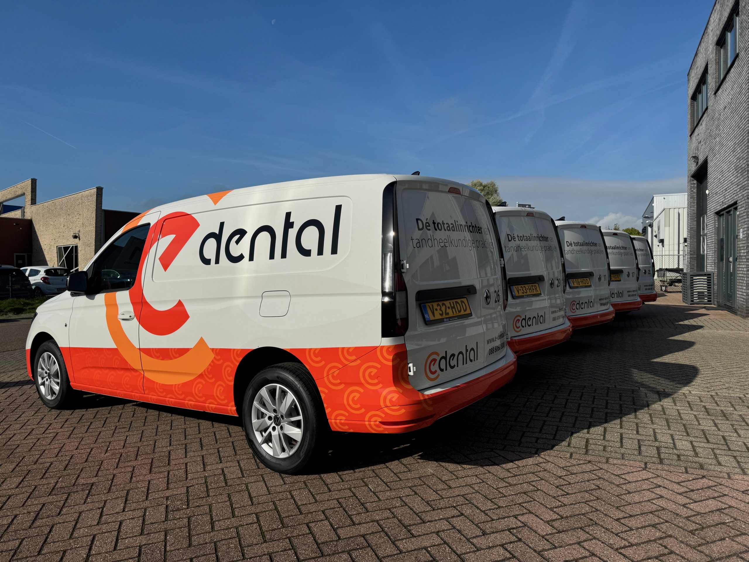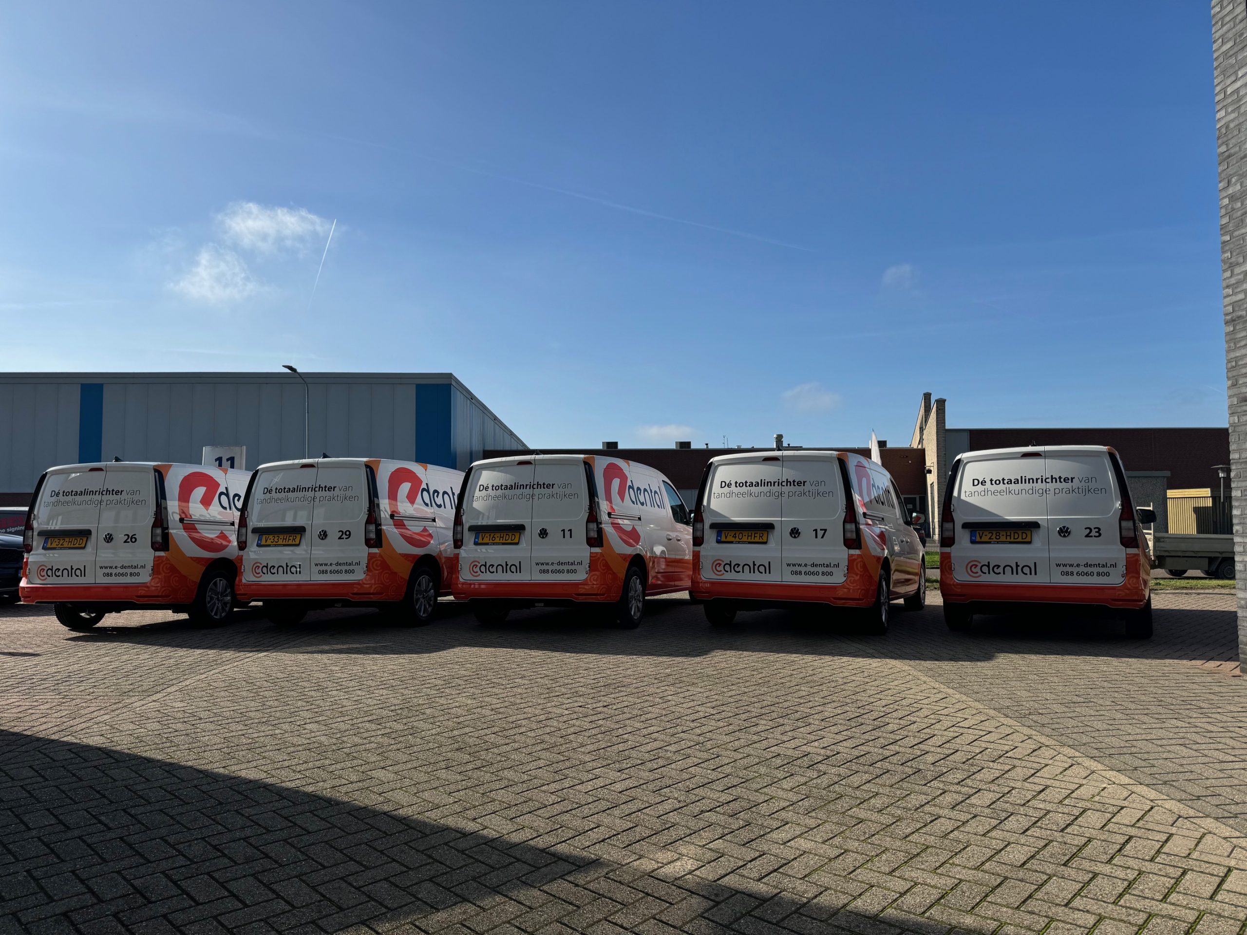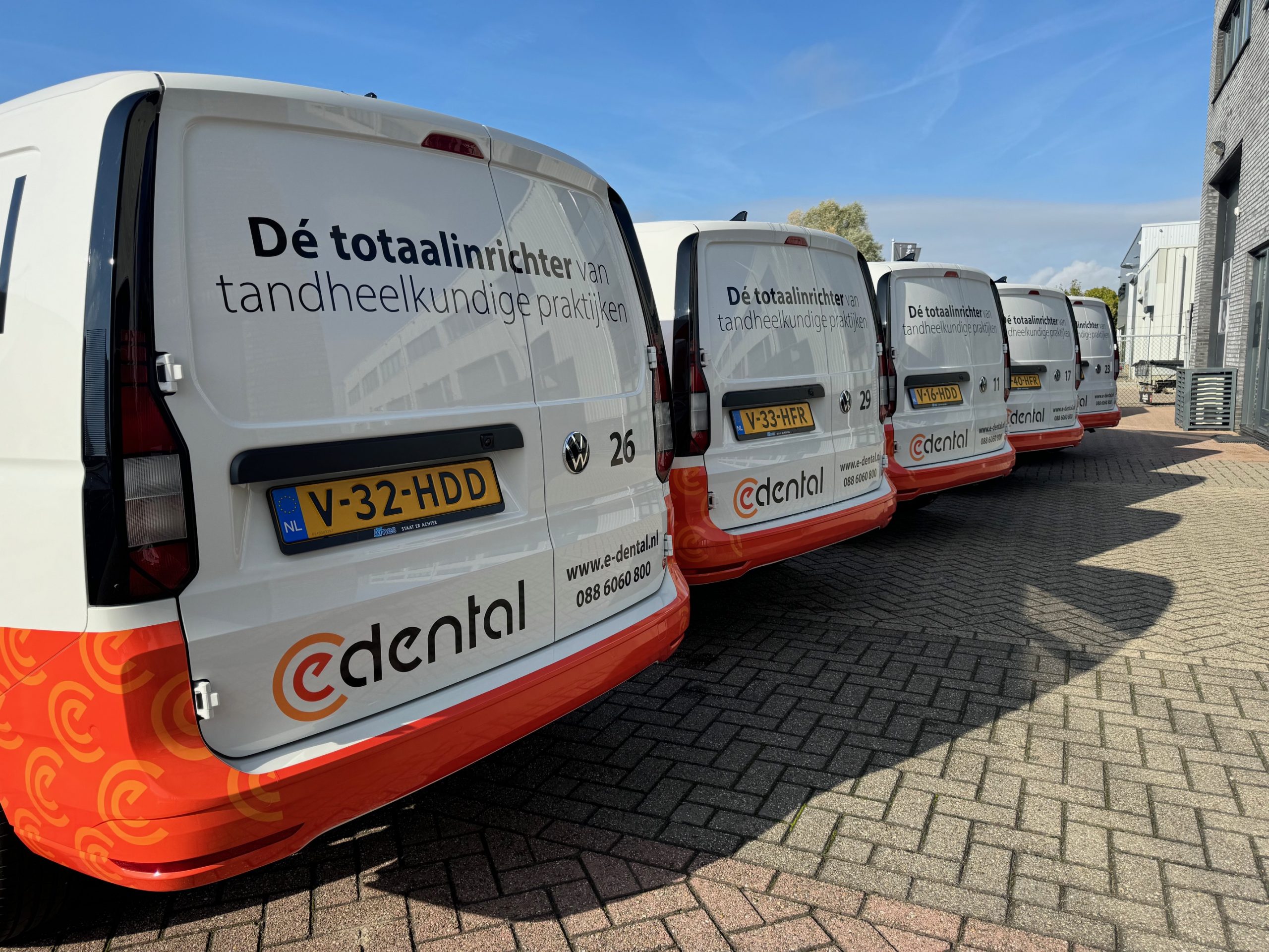 In verband met aankomende BPM heffing (vanaf januari 2025) op ook grijs kenteken voertuigen heeft E-Dental snel geschakeld door het gehele wagenpark te vernieuwen. Er is gekozen voor in totaal 6 Volkswagen Caddy's welke allemaal zijn voorzien van de nieuwe herkenbare huisstijl.